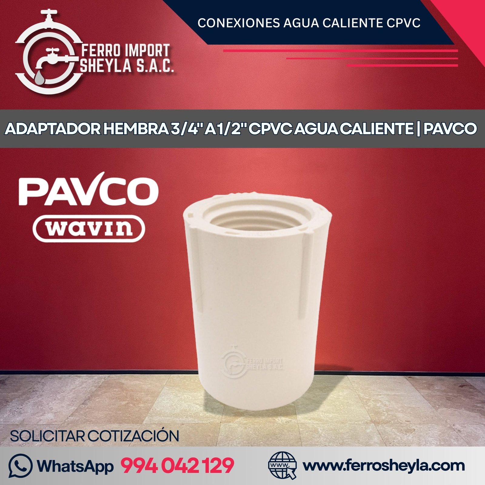 ADAPTADOR HEMBRA 3/4″ A 1/2″ CPVC AGUA CALIENTE | PAVCO