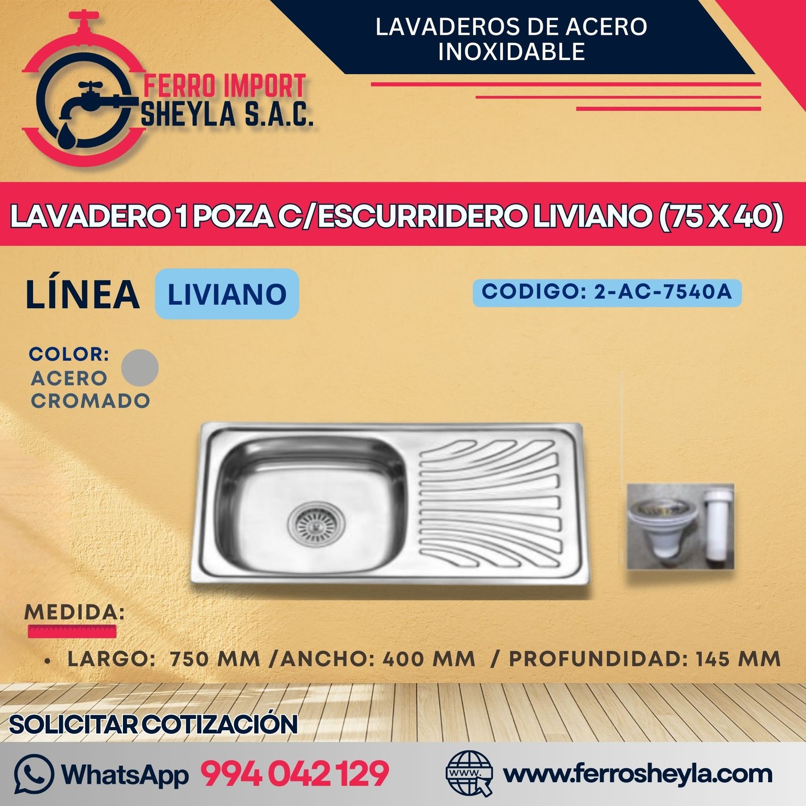 Sé el primero en valorar “LAVADERO 1 POZA C/ESCURRIDERO LIVIANO (75 X 40)”