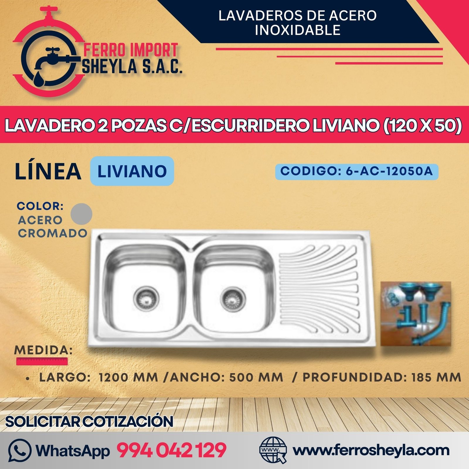 LAVADERO 2 POZAS C/ESCURRIDERO LIVIANO (120 X 50)
