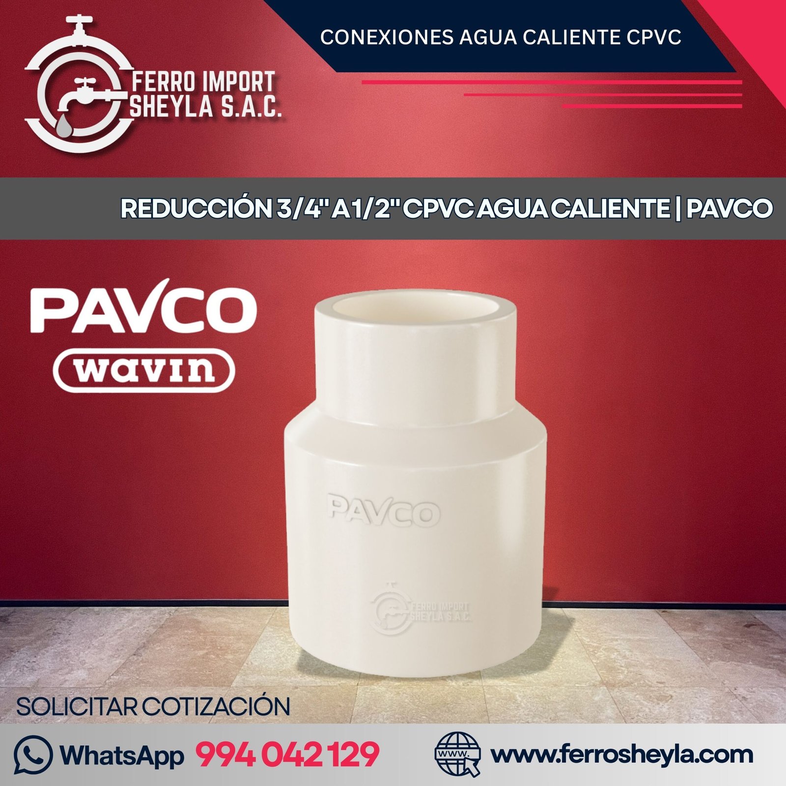 REDUCCIÓN 3/4″ A 1/2″ CPVC AGUA CALIENTE | PAVCO