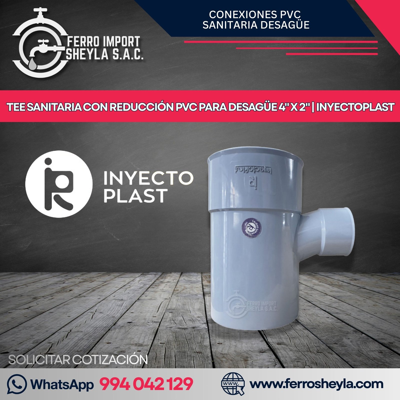 TEE SANITARIA CON REDUCCIÓN PVC PARA DESAGÜE 4″ X 2″ | INYECTOPLAST