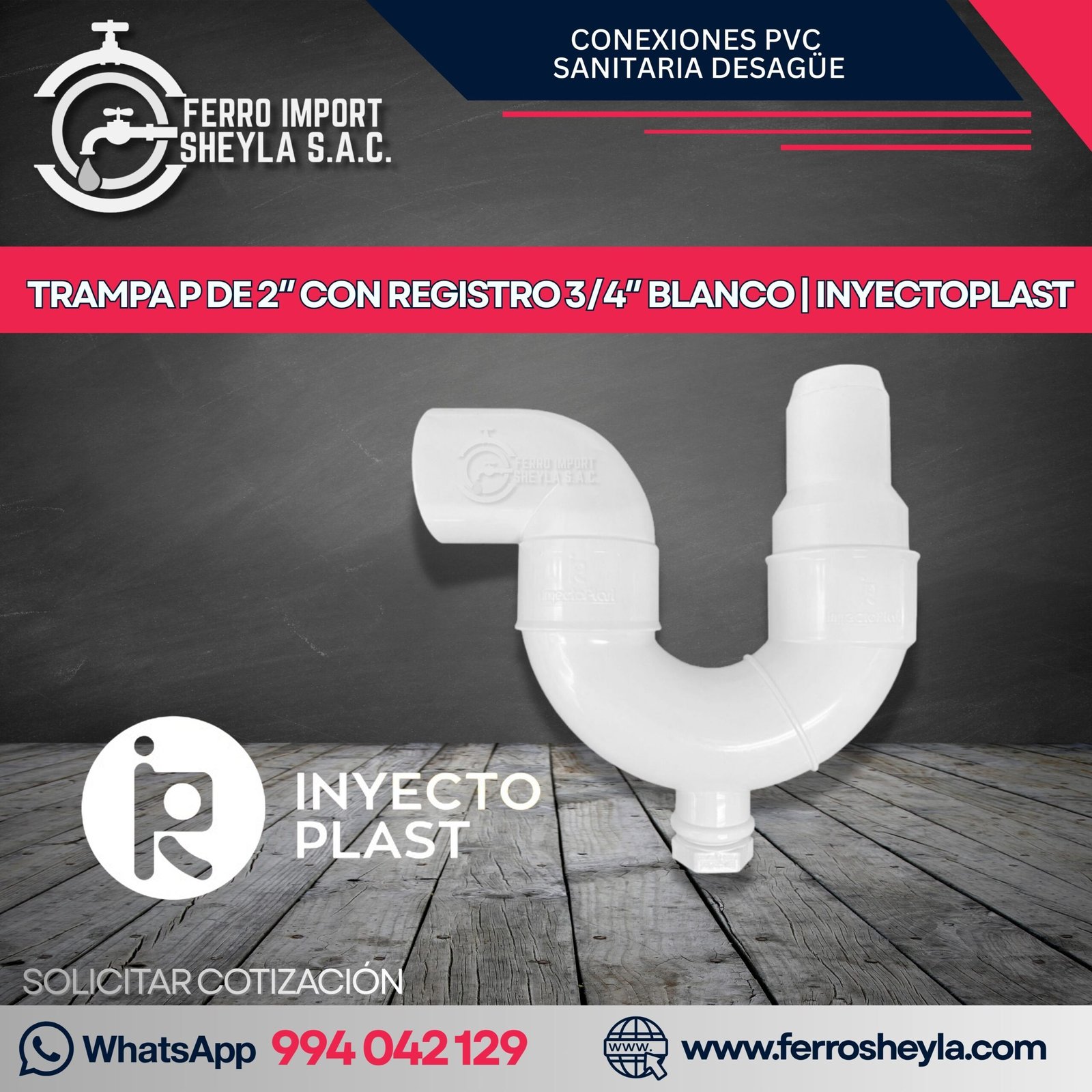 TRAMPA P DE 2″ CON REGISTRO 3/4″ BLANCO | INYECTOPLAST